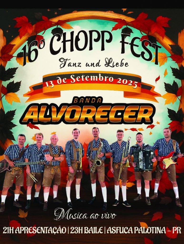 O Grupo Folclórico Alemão Tanz Und Liebe, de Palotina, realiza no próximo dia 13 de setembro a tradicional 16ª edição do Chopp Fest.