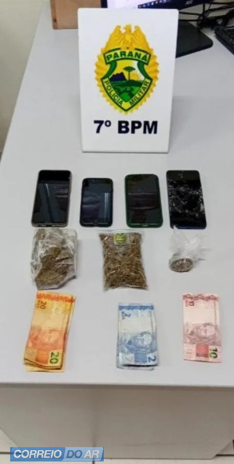 Dois maiores presos e um menor de idade apreendido, dois veículos apreendidos, dinheiro em espécie, além de porções de maconha e haxixe.