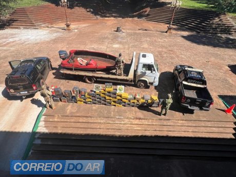 O material apreendido foi encaminhado, juntamente com a embarcação, à Delegacia da Polícia Federal em Foz do Iguaçu para os procedimentos legais.