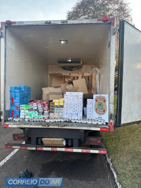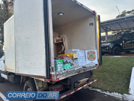 Durante a fiscalização, os agentes localizaram, no compartimento de carga, seis caixas escondidas entre potes de iogurte. Dentro das caixas, foram encontrados aproximadamente 500 aparelhos celulares de origem estrangeira, introduzidos ilegalmente no país, com provável procedência do Paraguai.