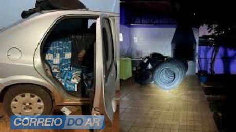 Ação conjunta das forças de segurança resultou na apreensão de 25 pneus e 84 caixas de cigarro contrabandeado na madrugada desta terça-feira (29), em Foz do Iguaçu.