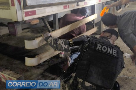 Durante a abordagem ao caminhão, o condutor não colaborou com a fiscalização. Diante da suspeita, os policiais identificaram que a carga estava escondida em um compartimento oculto, semelhante a um cofre instalado no baú do veículo. Para acessar o local, foi necessário realizar a abertura por baixo, pelo assoalho do caminhão.