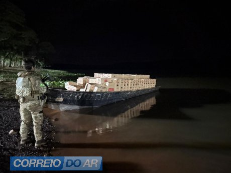 Após inspeção policial, constatou-se que transportava aproximadamente 50 caixas de cigarro de origem paraguaia, resultando em um *prejuízo estimado em R$ 180.000* (cento e oitenta mil reais) *ao crime organizado da região.