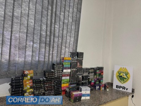 Durante a busca no porta-malas do veículo, foi localizada uma mala contendo cigarros eletrônicos e essências para vaper contrabandeados do Paraguai. Após a contagem, os produtos totalizaram 292 unidades de cigarros eletrônicos de diversas marcas e 21 unidades de essências para vaper, totalizando 313 itens apreendidos.