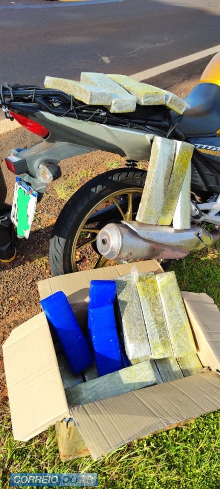 Durante a abordagem a uma motocicleta Honda/CG 160 Titan, de cor amarela e placas de Umuarama (PR), conduzida por um morador da mesma cidade, os policiais encontraram uma caixa de papelão na garupa do veículo. Ao realizar a vistoria, foram localizados diversos tabletes de maconha.