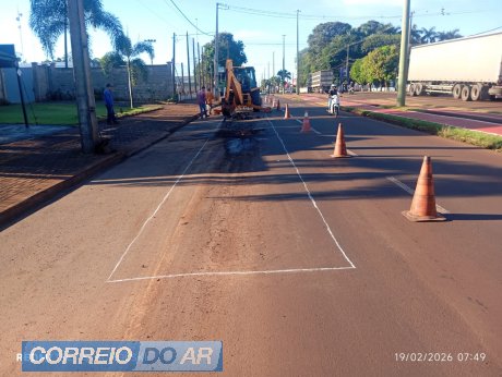 A Prefeitura de Palotina, por meio da Secretaria Municipal de Obras e Transportes Públicos, iniciou nesta quinta-feira (19) as obras de recuperação do pavimento na Avenida Presidente Kennedy, no trecho de saída para Francisco Alves.