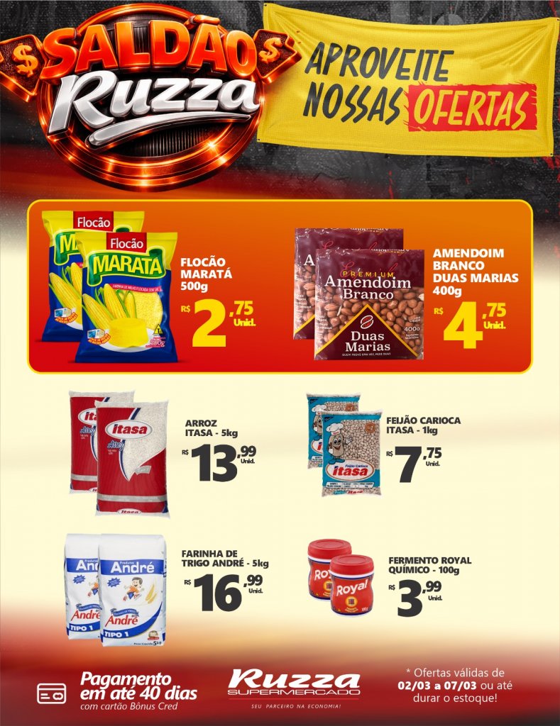 E para quem quer aproveitar ainda mais, o Saldão Ruzza segue com diversas promoções em vários setores da loja. As ofertas do Saldão são válidas de 02/03 a 07/03, ou até durarem os estoques.