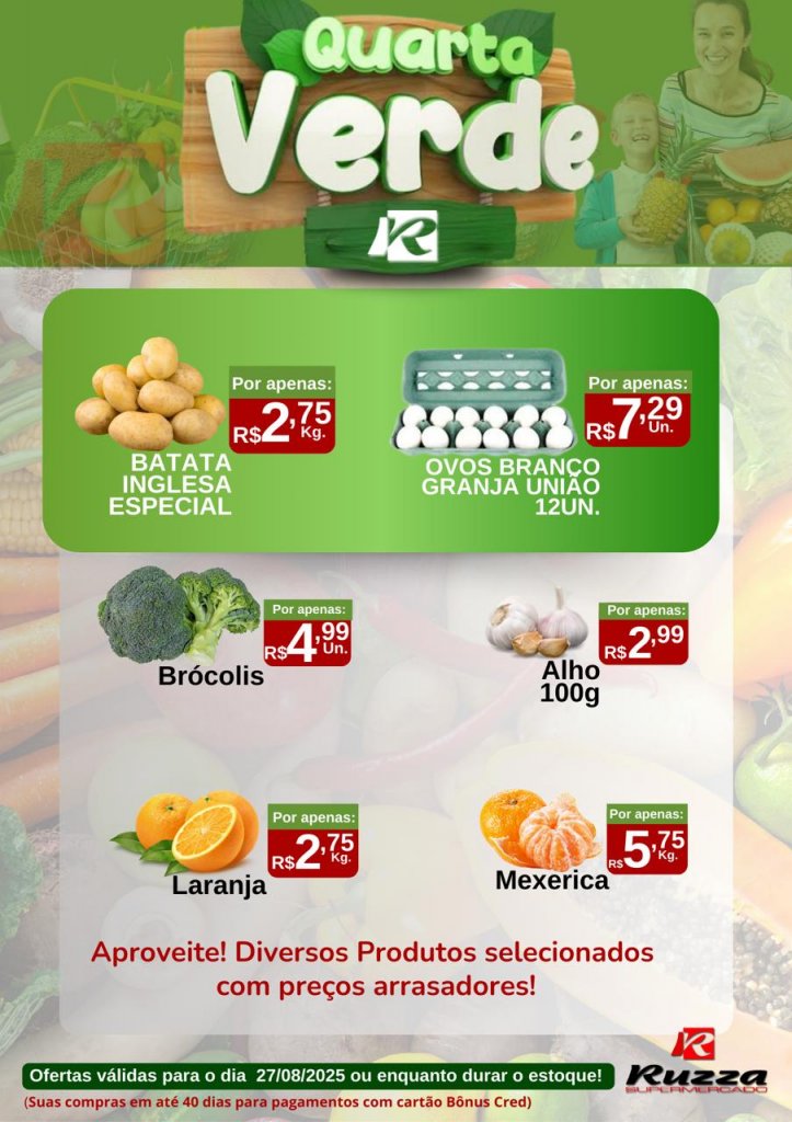 O Supermercado Ruzza de Palotina preparou ofertas especiais para esta quarta-feira (27), é dia de aproveitar a Quarta Verde!