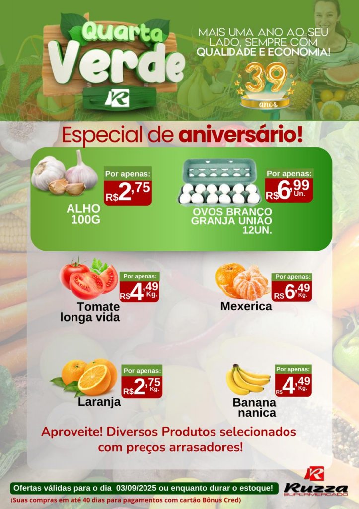 O Supermercado Ruzza de Palotina preparou ofertas especiais para esta quarta-feira (03), é dia de aproveitar a Quarta Verde!