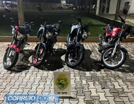 Diante da situação, foi iniciado acompanhamento tático, que resultou na abordagem dos quatro motociclistas. Durante revista pessoal e verificação dos veículos, nada de ilícito foi encontrado.