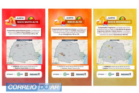 Todos os alertas são elaborados e emitidos por especialistas do Centro de Gerenciamento de Risco e Desastre (Cegerd) com base em dados do Simepar (Sistema de Tecnologia e Monitoramento Ambiental do Paraná) e observações em tempo real, 24 horas por dia.