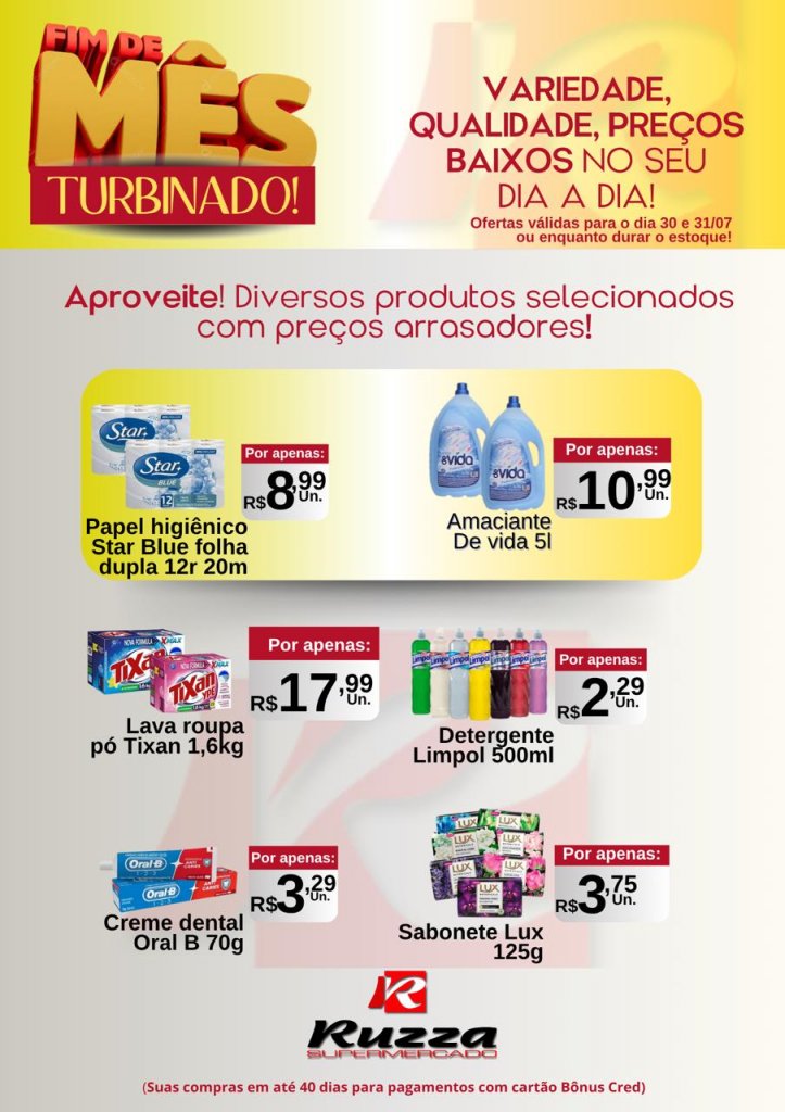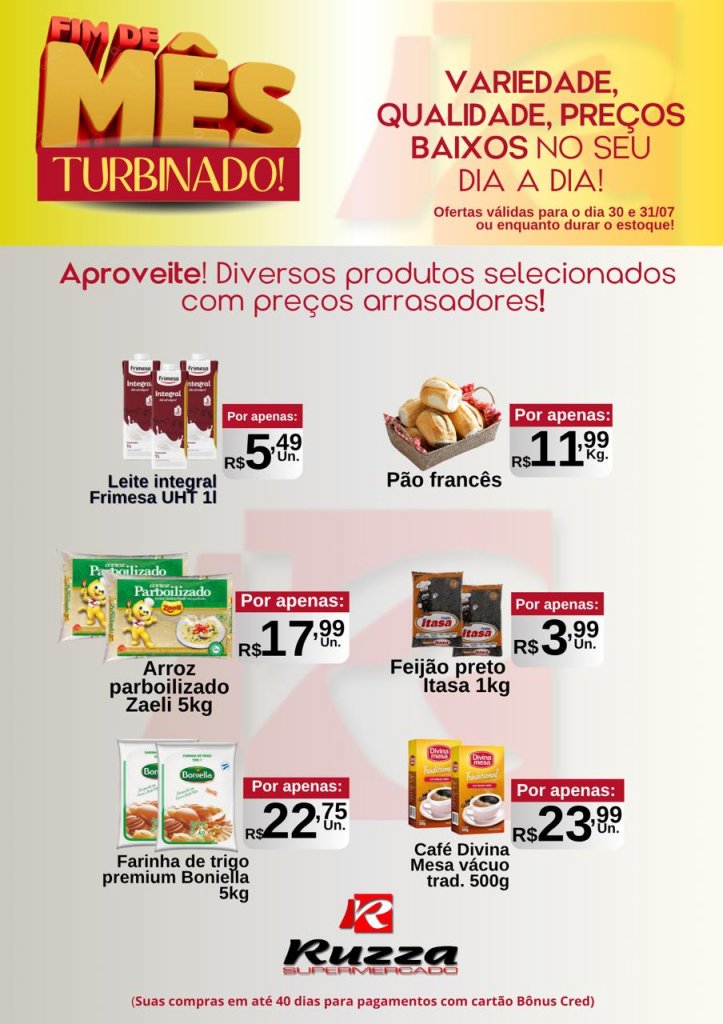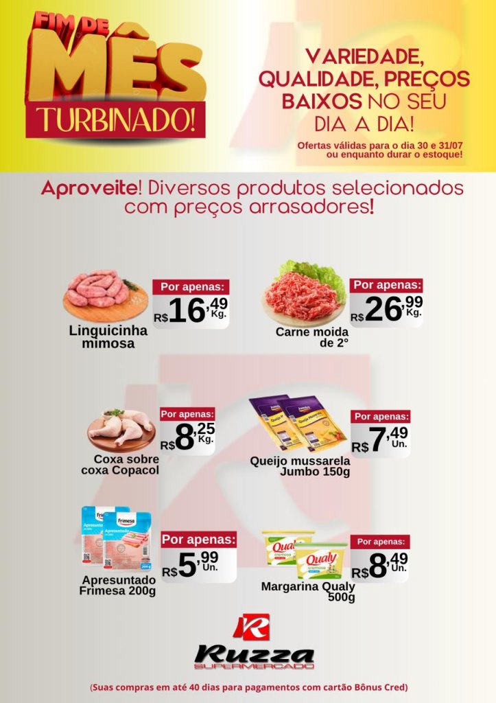 Para encerrar o mês e começar agosto economizando! Descontos especiais no açougue, mercearia, bebidas, limpeza e muito mais. São ofertas turbinadas para você abastecer a casa com qualidade e preço baixo.