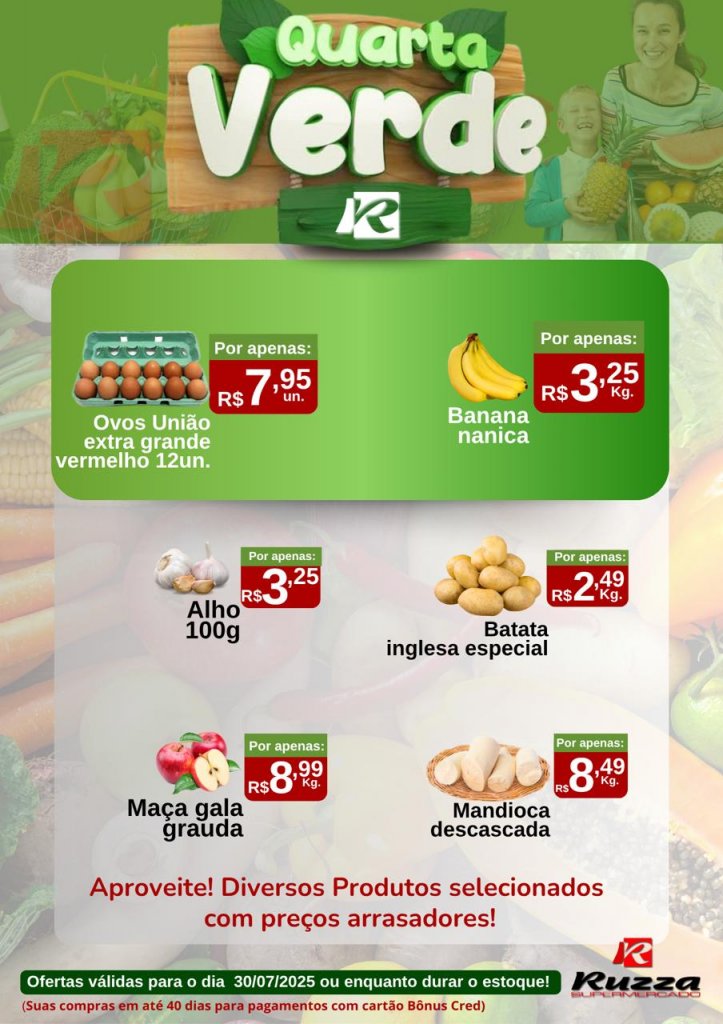 Quarta Verde – Válida somente nesta quarta-feira, dia 30 de julho