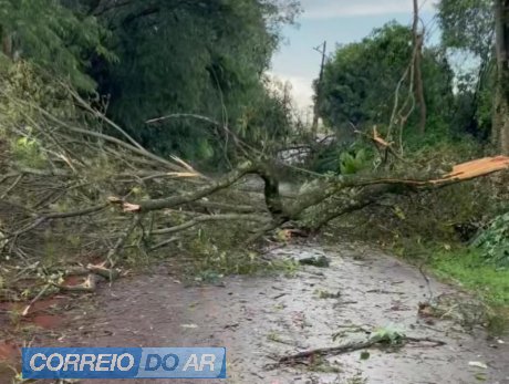 Na região da Vila Rural também houve queda de galhos e árvores, sendo algumas às margens da BR-163.