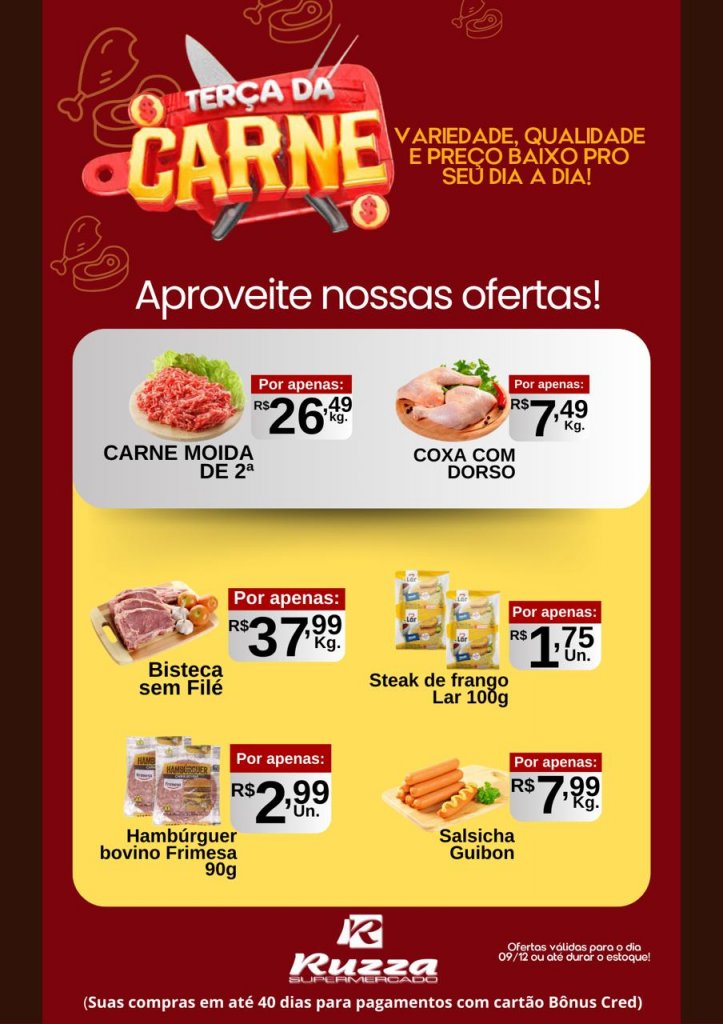 O Supermercado Ruzza preparou ofertas especiais para você nesta terça (09). Venha e aproveite a Terça da Carne!