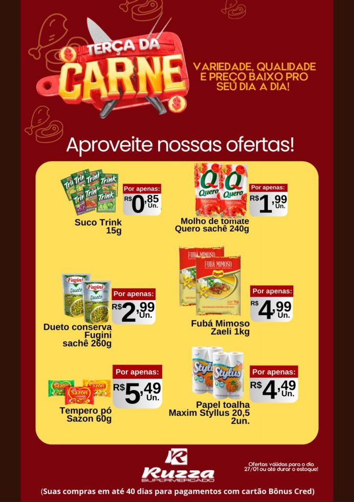 O Supermercado Ruzza preparou ofertas especiais para você nesta terça (27). Venha e aproveite a Terça da Carne!