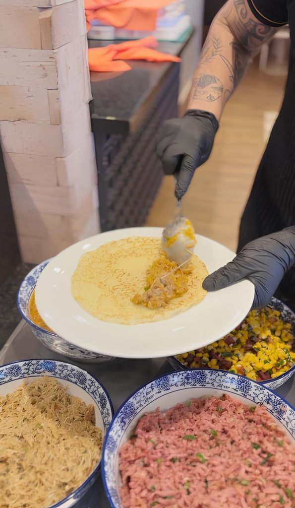 Além do nosso buffet completo, cheio de comidas quentes e saladas fresquinhas, você também encontra o buffet de panquecas, preparado na hora.