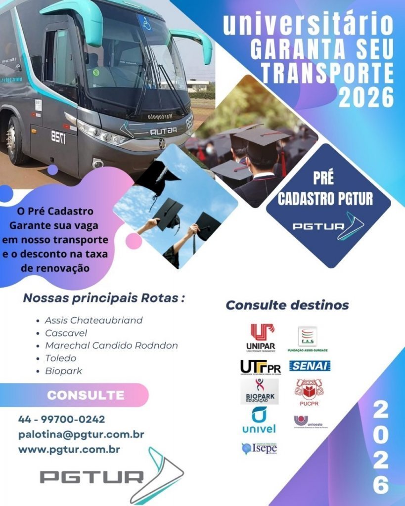 Transporte Universitário 2026 – Garanta sua vaga nas nossas viagens com a PGTUR de Palotina!