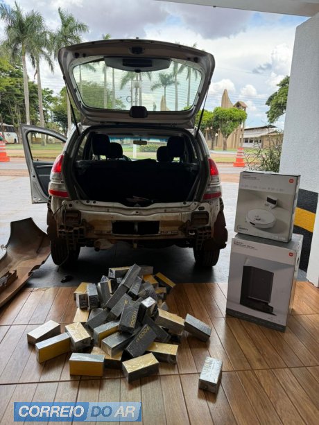 No entanto, durante a vistoria no automóvel, os policiais identificaram um compartimento oculto no para-choque traseiro. Ao abrir o local, foi encontrada uma grande quantidade de aparelhos celulares. Após a contagem, foram apreendidos 67 celulares da marca Xiaomi, modelo Poco F7.