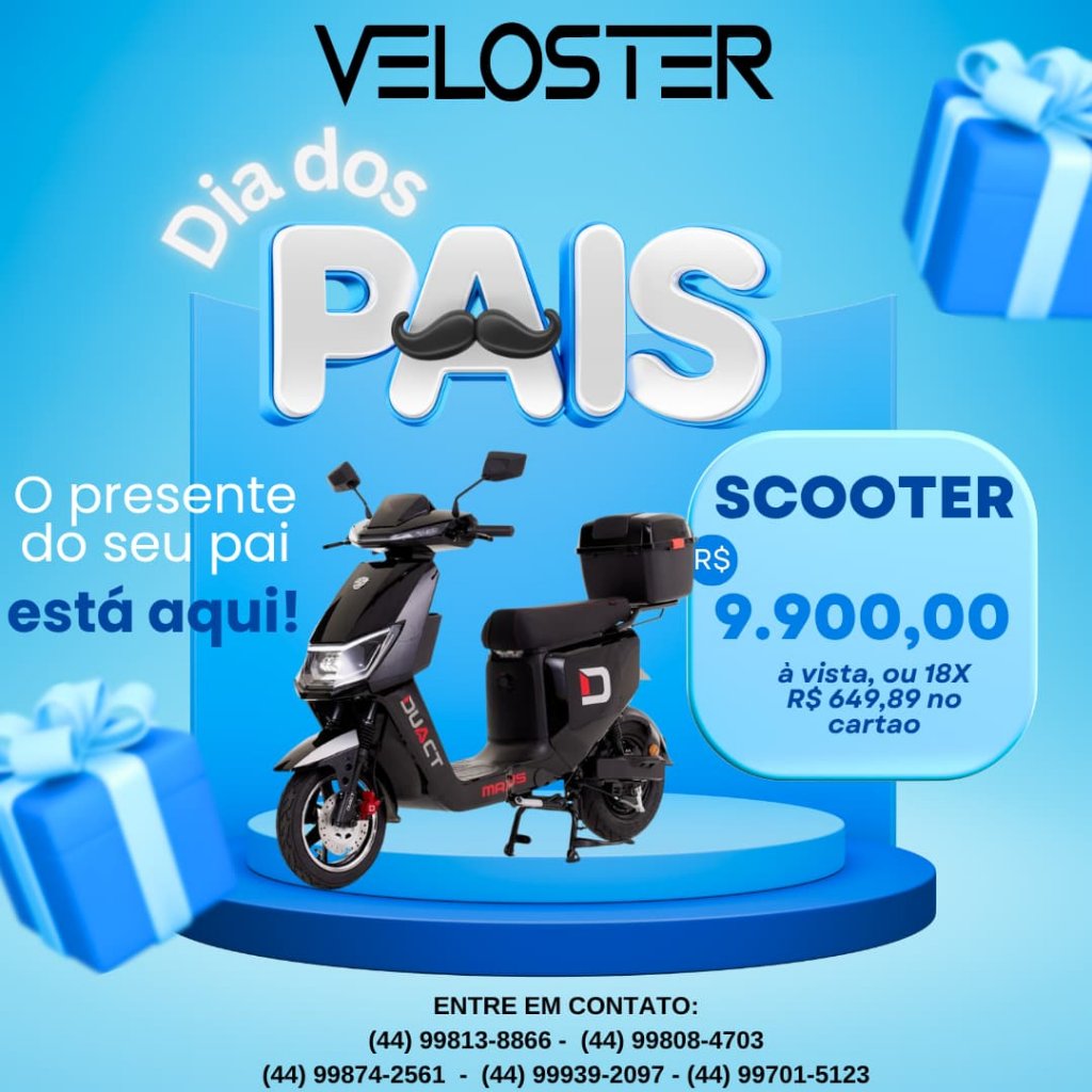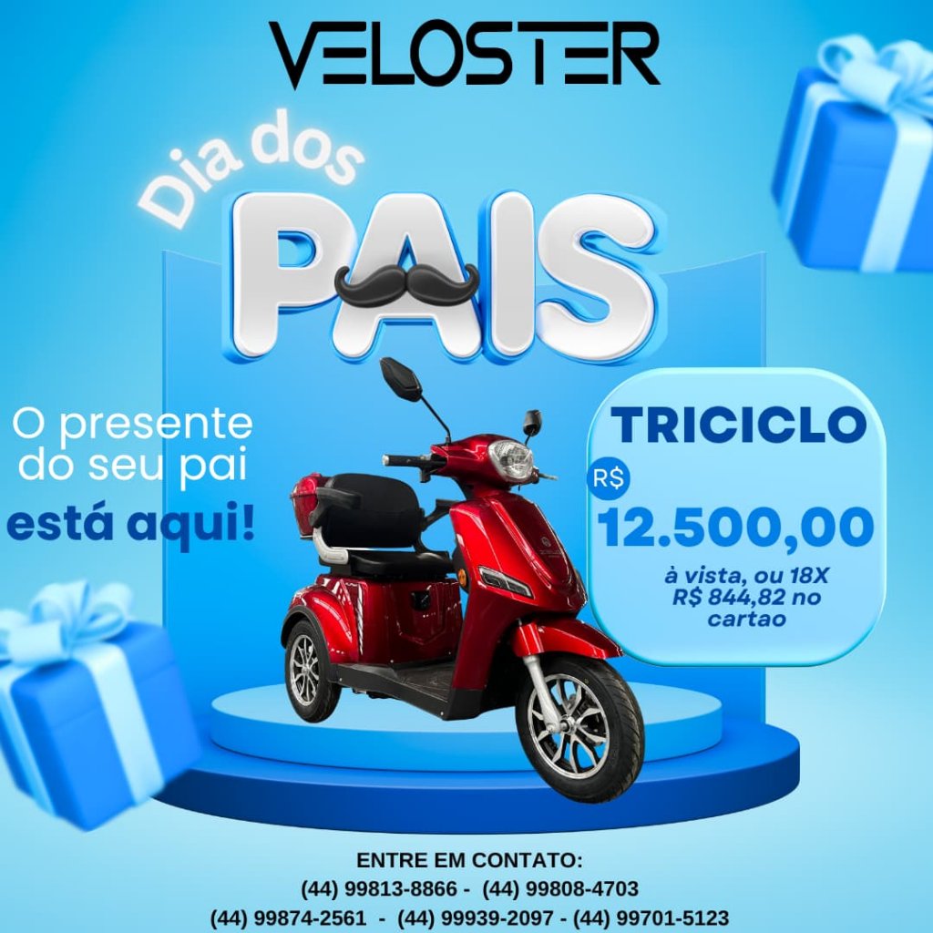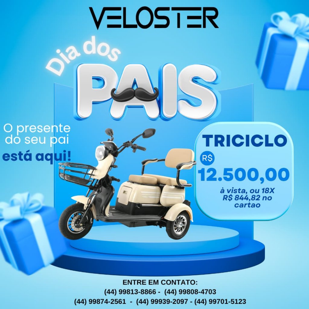 Com a missão de transformar o Dia dos Pais em um momento inesquecível, a Veloster Palotina lança uma campanha especial com veículos elétricos que unem praticidade, economia e estilo. Entre os destaques, estão modelos como triciclos, scooters e bicicletas elétricas, ideais para pais que prezam por conforto, mobilidade e modernidade no dia a dia.