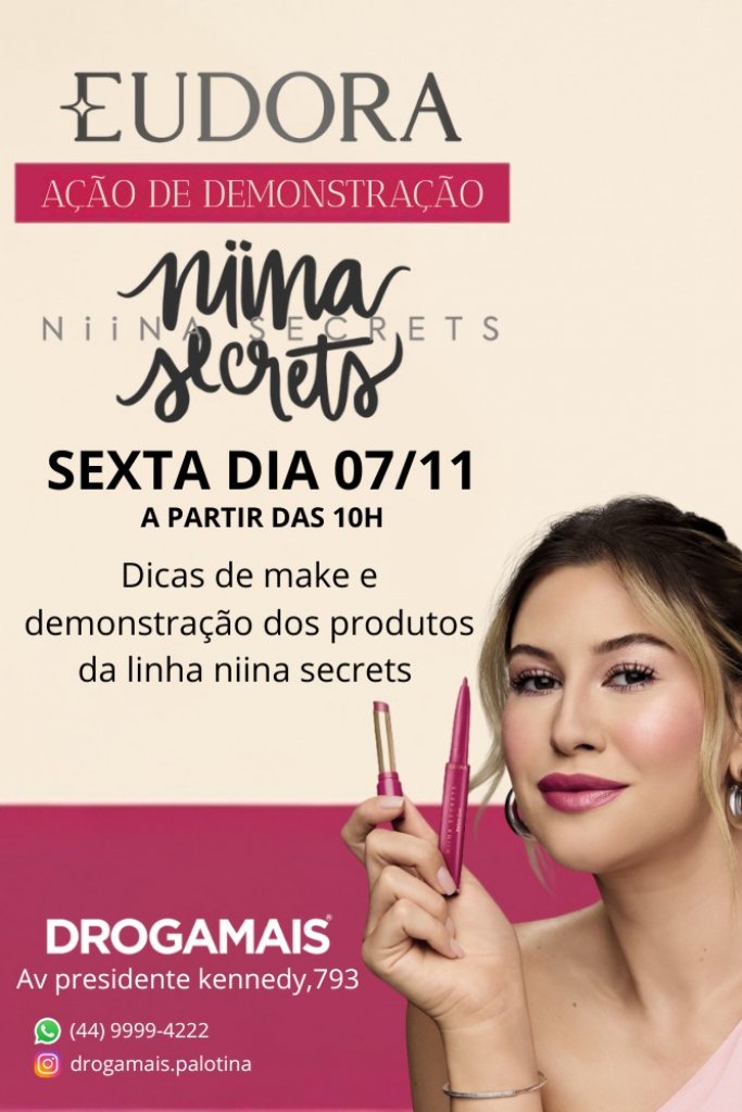 Uma maquiadora profissional da linha Nina Secrets estará presente para mostrar técnicas, dar dicas exclusivas e ensinar como usar cada produto para arrasar em qualquer ocasião.