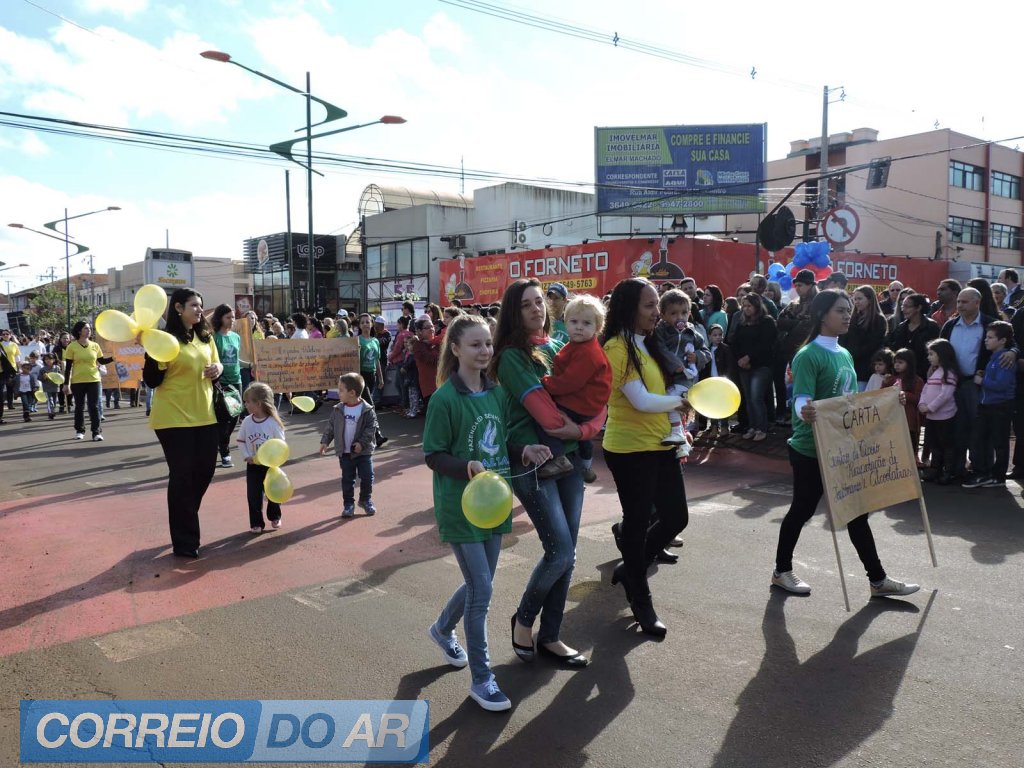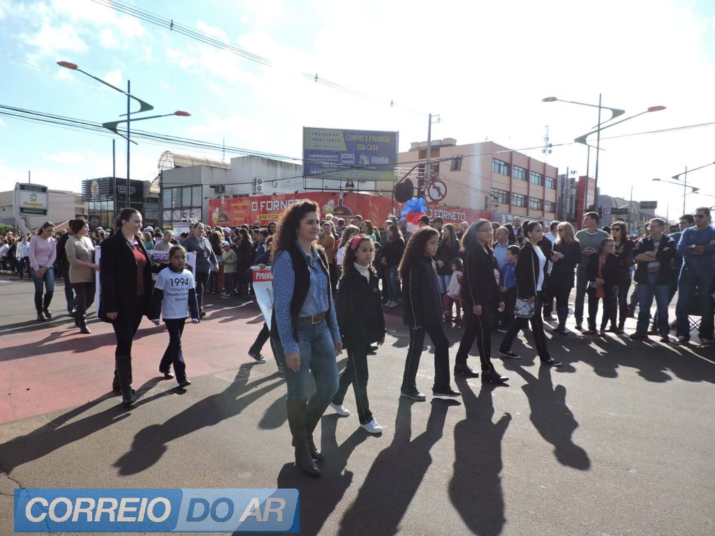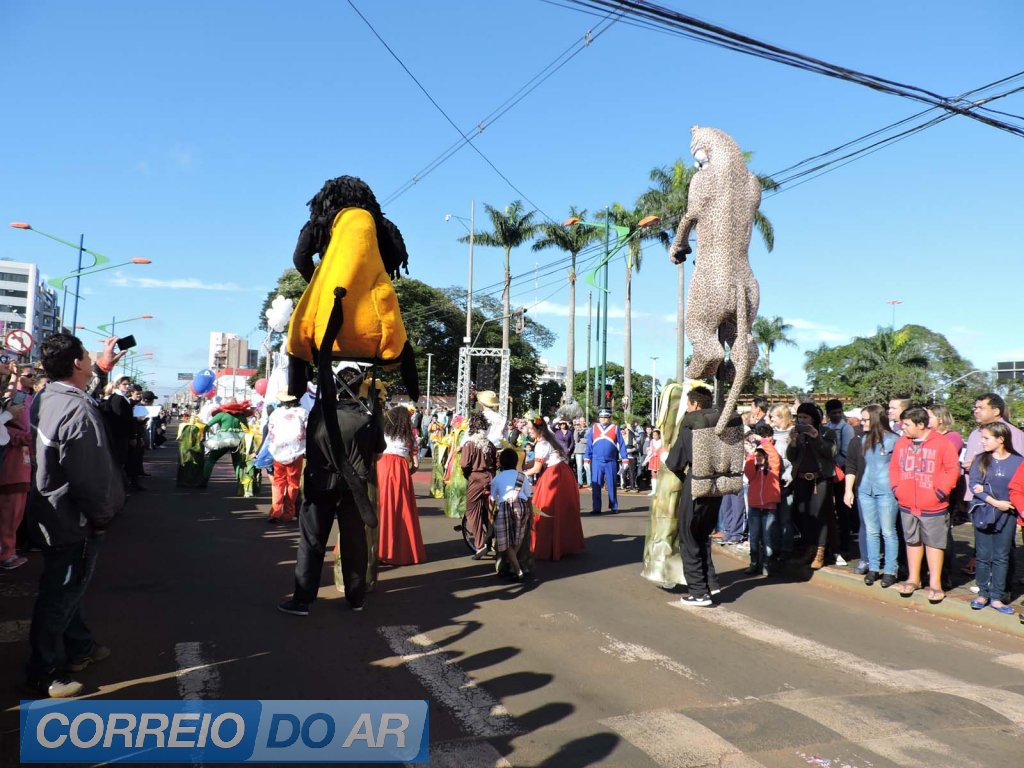 Empresas privadas e setores públicos participaram do desfile, apresentando parte da história e dos trabalhos realizados no dia-a-dia.