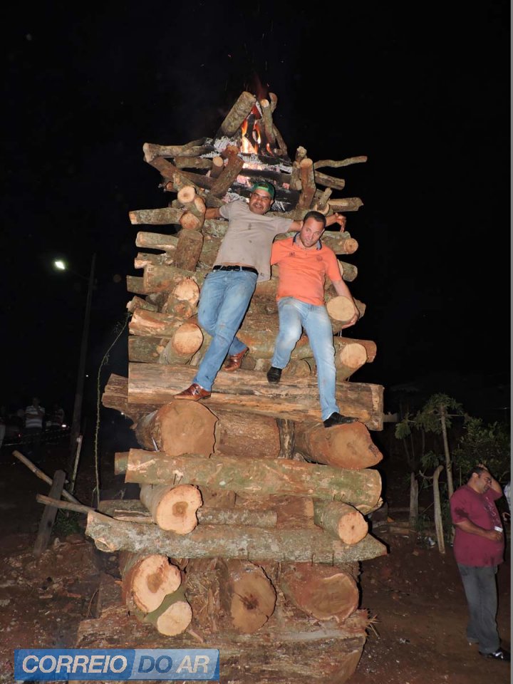 A fogueira, medindo mais de 5 (cinco) metros de altura, foi atração a noite toda.