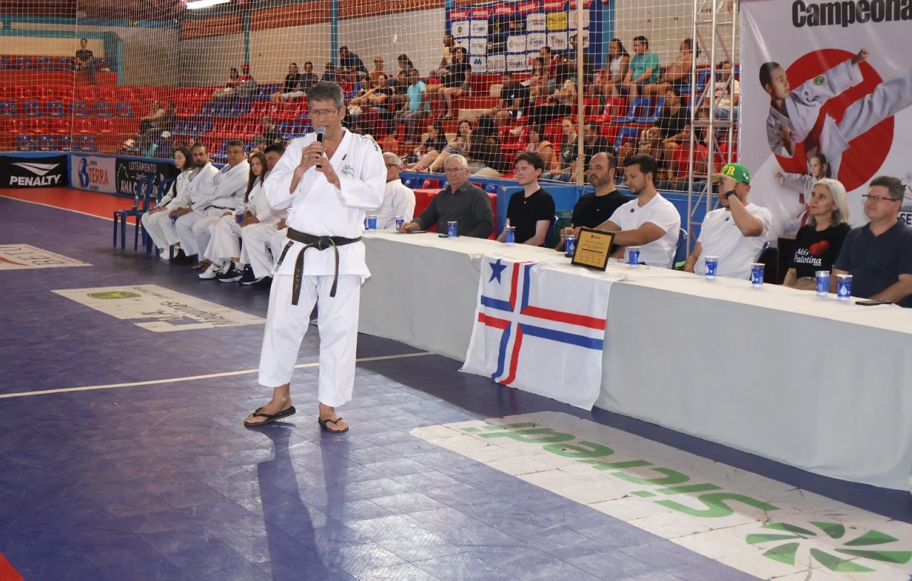 Diversas autoridades prestigiaram o evento, entre elas o prefeito Rodrigo Ribeiro; a secretária de Educação e Cultura, Marinês Marafon Kuki; o presidente da Câmara de Vereadores, Thiago Mostachio; os vereadores Gilmar Hinkel, Márcia Berno Cecluski, Ademir Paludo, Valtecir Cesar Manfroi, Hederson Giacomini e Felipe Luis Brustolin; além do presidente da Federação Estadual de Karatê, Marcos Gazzoni.
