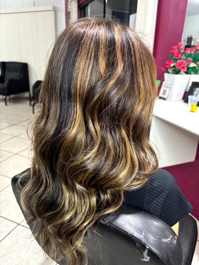 Outra aposta que vem se destacando é o mocha mousse, técnica que proporciona um efeito leve, elegante e contemporâneo, valorizando o movimento e a textura dos cabelos.
