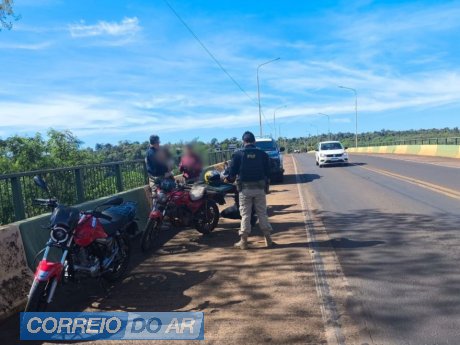 Por volta das 9h, agentes da PRF identificaram aproximadamente seis motociclistas circulando de maneira irregular sobre a ponte. Segundo informações da corporação, os condutores abordavam veículos em movimento, comportamento que colocou em risco a segurança do trânsito e gerou apreensão entre os demais motoristas que transitavam pelo local.