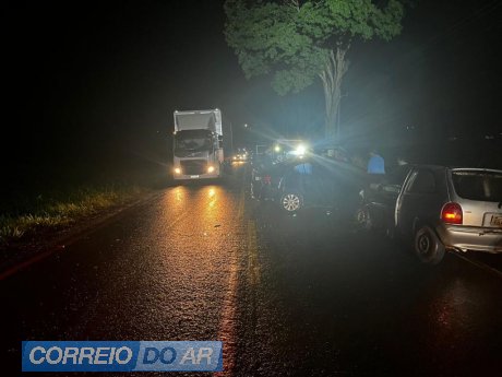 Um acidente envolvendo vários veículos deixou três pessoas feridas na noite desta quinta-feira (16), na rodovia PR-364, entre Palotina e Terra Roxa, nas proximidades do quilômetro 595. O trecho estava escorregadio devido à chuva no momento do acidente.