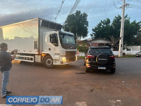 Um acidente de trânsito foi registrado na manhã desta quarta-feira (25), no cruzamento das ruas 1º de Janeiro com 1º de Maio, na rota de caminhões, em Palotina.