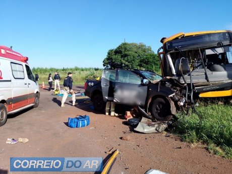 Entre as vítimas está uma criança de aproximadamente 7 anos. De acordo com as informações apuradas no local, o coletivo seguia no sentido Farol e, ao realizar a conversão para acessar o Parque Industrial, em Campo Mourão, foi atingido pela caminhonete que trafegava no sentido contrário.