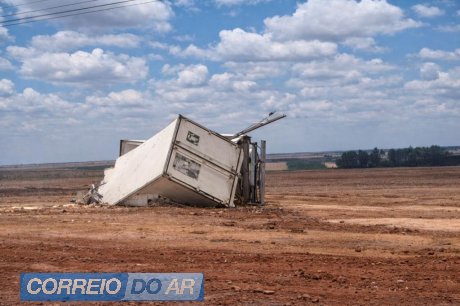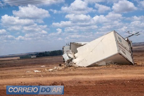 Com a força do impacto, o caminhão branco saiu da pista, adentrou uma área de plantação e acabou colidindo contra um poste. O outro caminhão envolvido no acidente também saiu da rodovia e parou em meio à lavoura.