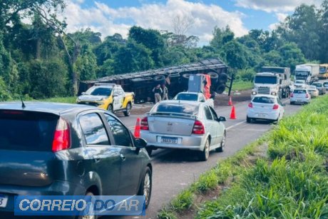 O condutor – morador de Xaxim (SC) – seguia com a carreta no sentido Perobal-Umuarama quando, por motivos desconhecidos, perdeu o controle do veículo. É possível que o pino que une a carreta do “cavalo” se desprendeu, pois a parte frontal do veículo parou no lado esquerdo da pista, em uma área de mata; enquanto a parte de trás parou na direita, tombada sobre a rodovia.