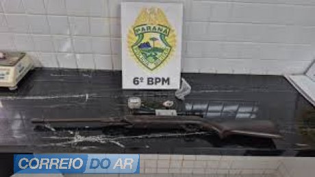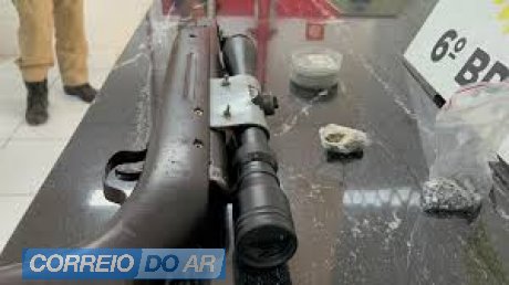 Com o rapaz foi localizado uma espingarda de pressão, com uma luneta e uma porção pequena de maconha. Também foi encontrado munição (chumbinho).