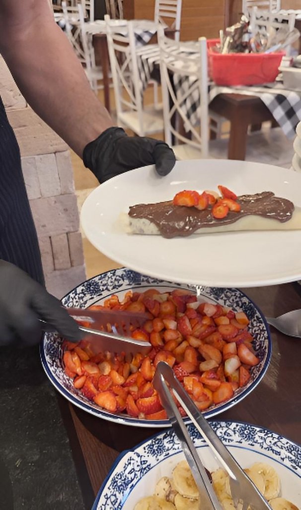 As panquecas são montadas na hora, com o recheio que você quiser, tanto salgadas quanto doces, garantindo sabor e qualidade em cada pedido. As versões com chocolate e morango são um dos grandes destaques.