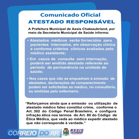 O município de Assis Chateaubriand oficializou sua adesão à Campanha “Atestado Responsável”, uma iniciativa que visa conscientizar a população sobre a emissão adequada de atestados médicos, além de proteger os profissionais de saúde contra possíveis situações de violência. A ação é promovida por meio de uma parceria entre o Conselho das Secretarias Municipais de Saúde do Paraná (COSEMS-PR), a Secretaria Estadual de Saúde (SESA-PR) e o Conselho Regional de Medicina do Paraná (CRM-PR).