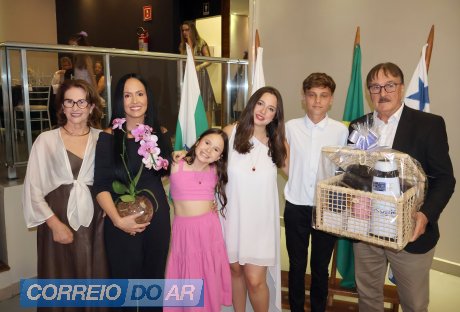Vice-presidente da C.Vale Ademar Pedron e a esposa Renati com André Benetti e família.