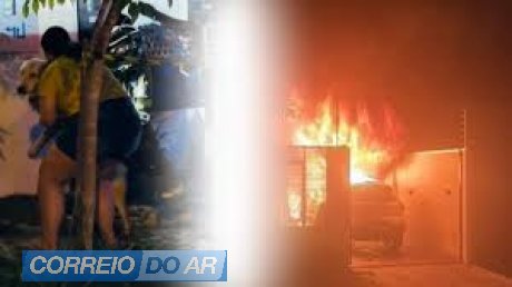 O fogo começou em um carro que estava estacionado na garagem e rapidamente se espalhou para parte da residência. O veículo, um modelo Volvo, ficou totalmente destruído.