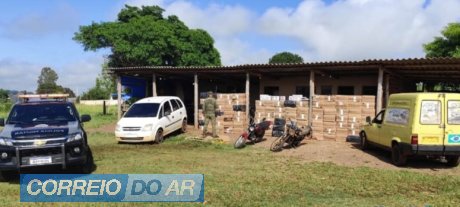 Uma ação conjunta entre policiais militares do Batalhão de Fronteira (BPFron) e agentes da Receita Federal, resultou na apreensão de cigarros contrabandeados, carros e motocicletas, que estava em uma propriedade em Altônia