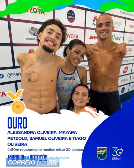 A equipe brasileira continua brilhando no Mundial de natação paralímpica disputado em Singapura. Nesta terça-feira (19), o Brasil chegou ao total de 19 pódios na competição, após a conquista de mais quatro ouros e três pratas, assumiu a quarta colocação do quadro de medalhas.