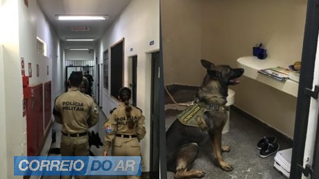 A ação contou com a participação dos cães de faro Black e Colt, especialistas na detecção de armas de fogo e substâncias entorpecentes. Os animais foram empregados em uma inspeção minuciosa nas dependências internas da unidade prisional, percorrendo áreas estratégicas para garantir a integridade e a segurança do local.
