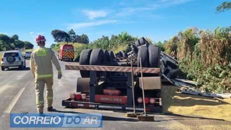O caminhão transportava aproximadamente 750 sacos de soja, e parte da carga ficou espalhada pela rodovia após o capotamento. A PRF (Polícia Rodoviária Federal) foi acionada para sinalizar o trecho e registrar o acidente, além de orientar o trânsito até a retirada do veículo e a limpeza da pista.