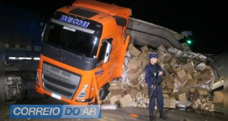 Caminhão com 25 toneladas de congelados é atingido por trem em Ponta Grossa
