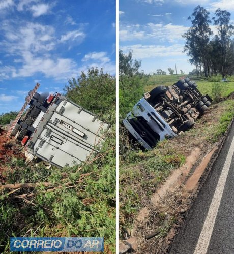 Um caminhão tombou ontem, segunda-feira (21), na PR-486, em trecho que liga o entroncamento da PR-323 (região de Cedro) ao entroncamento com a PR-681 (Alto Piquiri), no noroeste do Paraná.