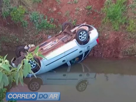 Conforme as informações, o sinistro aconteceu por volta das 20h15 e envolveu u GM/Corsa Sedan, que saiu da pista e capotou dentro do córrego, parando de ponta cabeça.