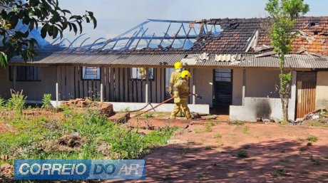 Uma residência localizada na Rua Pedro Álvares Cabral, na Vila Santa Rosa, em Apucarana, foi completamente destruída por um incêndio na manhã desta quarta-feira (10).