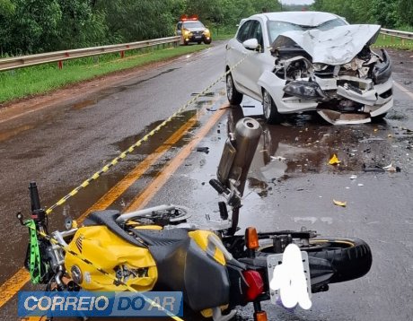 Segundo informações levantadas no local, com base nos vestígios da colisão, no depoimento do condutor envolvido e nos dados coletados pela perícia, um veículo Fiat Cronos, com placas de Cascavel, seguia pela rodovia quando acabou se envolvendo em uma colisão frontal com uma motocicleta Honda CB 300R, emplacada em Guaporema. O impacto foi violento e causou danos significativos em ambos os veículos, espalhando destroços pela pista.