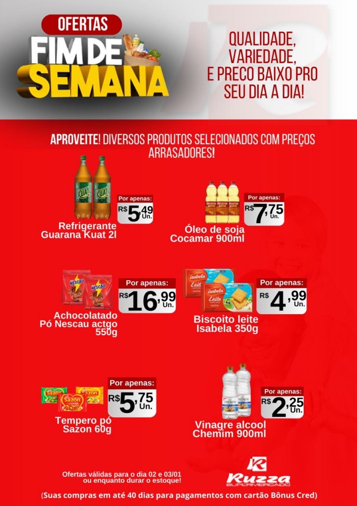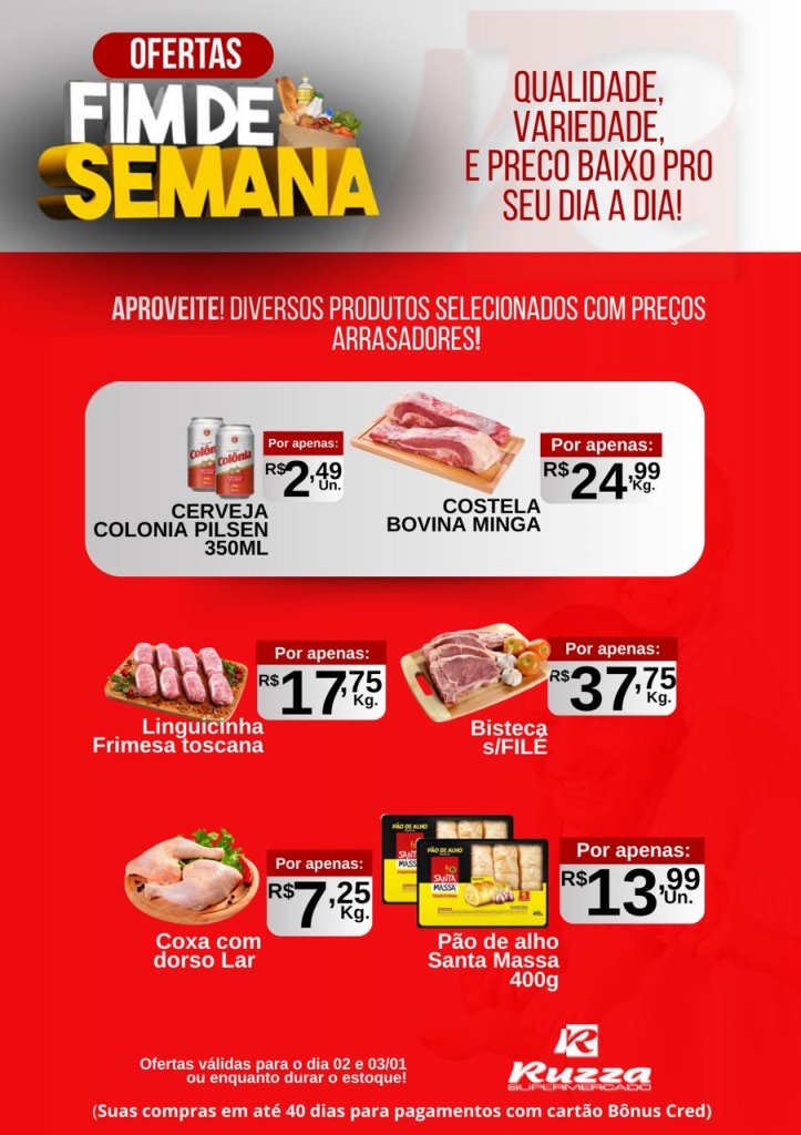 Comece o ano economizando: Supermercado Ruzza têm ofertas especiais nesta sexta e sábado